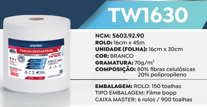 PANO MULTIUSO ROLO 16CM X 30CM C/150 (WIPER TW1630) BRANCO - INOVEN