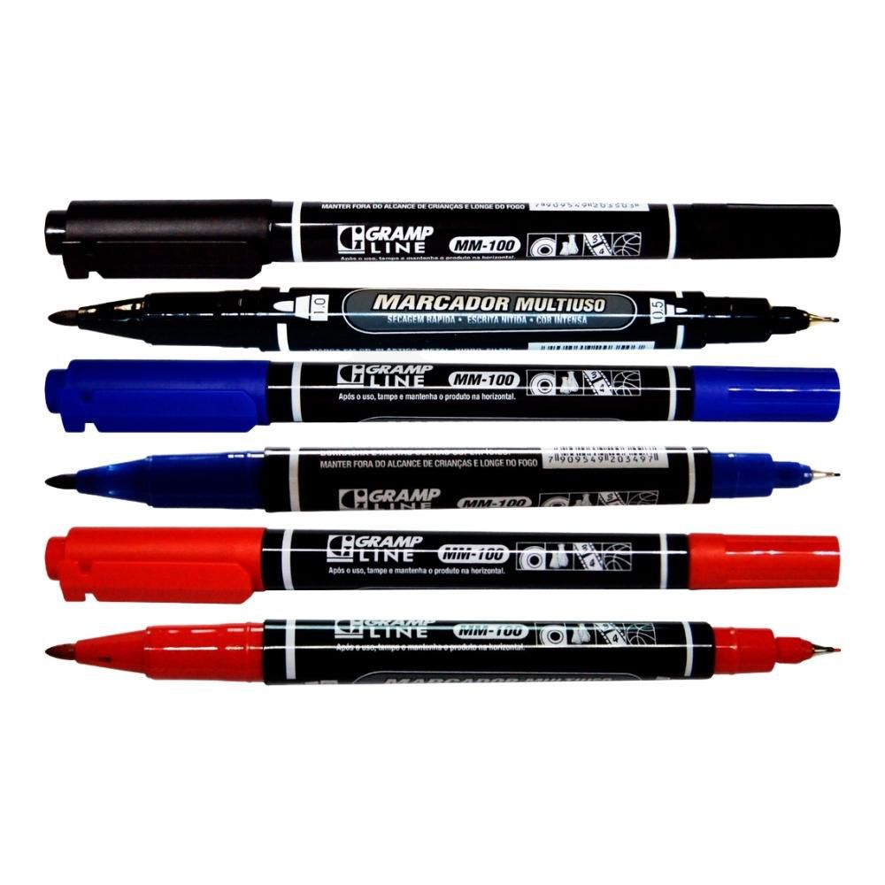 CANETA PERMANENTE 2 PONTAS MM100 AZUL - GRAMPLINE
